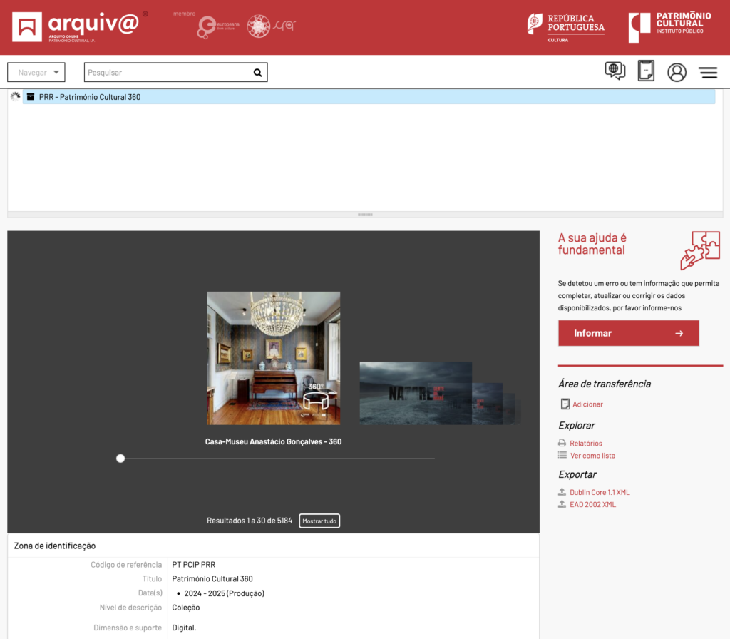 CULTURAL HERITAGE 360 is a public project offering free, universal online access to Portuguese Cultural Heritage in digital format.